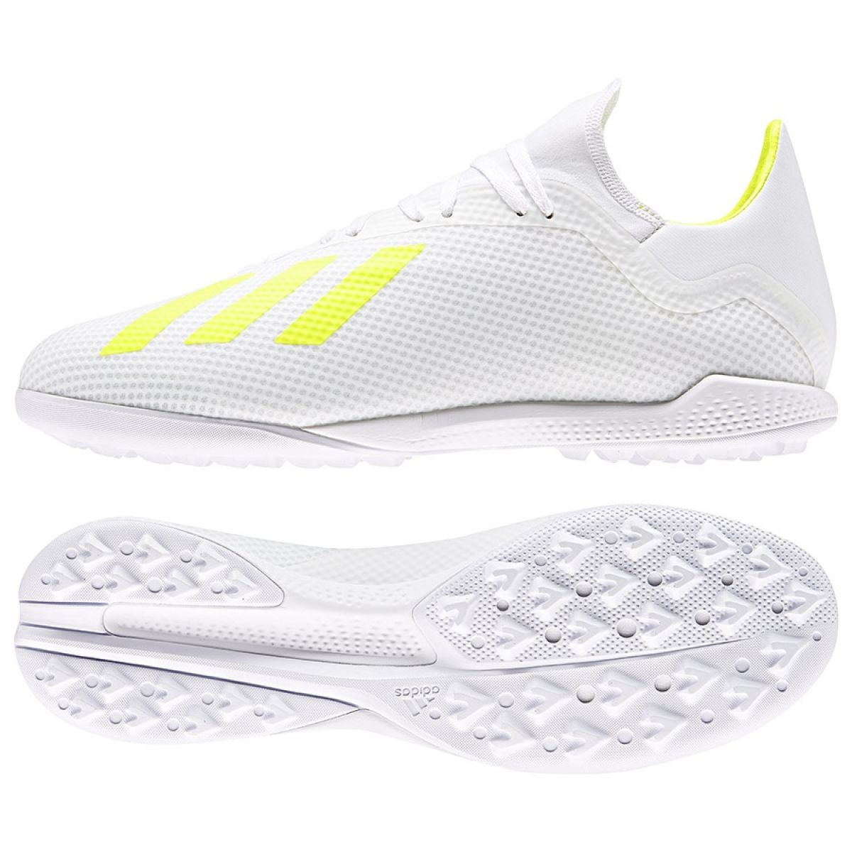Le scarpe Adidas X 18.3 TF M BB9400 non solo hanno parametri prestazionali eccellenti, ma hanno anche un design alla moda in un colore bianco dominante con accenti gialli che attirano l'attenzione e aggiungono un carattere sportivo. Scegli adidas e sentiti sicuro in campo!