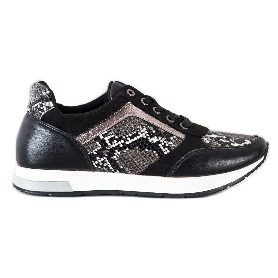 Se stai cercando scarpe che uniscano un design alla moda con un comfort senza tempo, i modelli di Kylie saranno un'ottima scelta. Queste sneakers alla moda in bianco, nero e grigio si distinguono per un originale motivo in pelle di serpente, che attira lo sguardo e aggiunge carattere a qualsiasi styling.