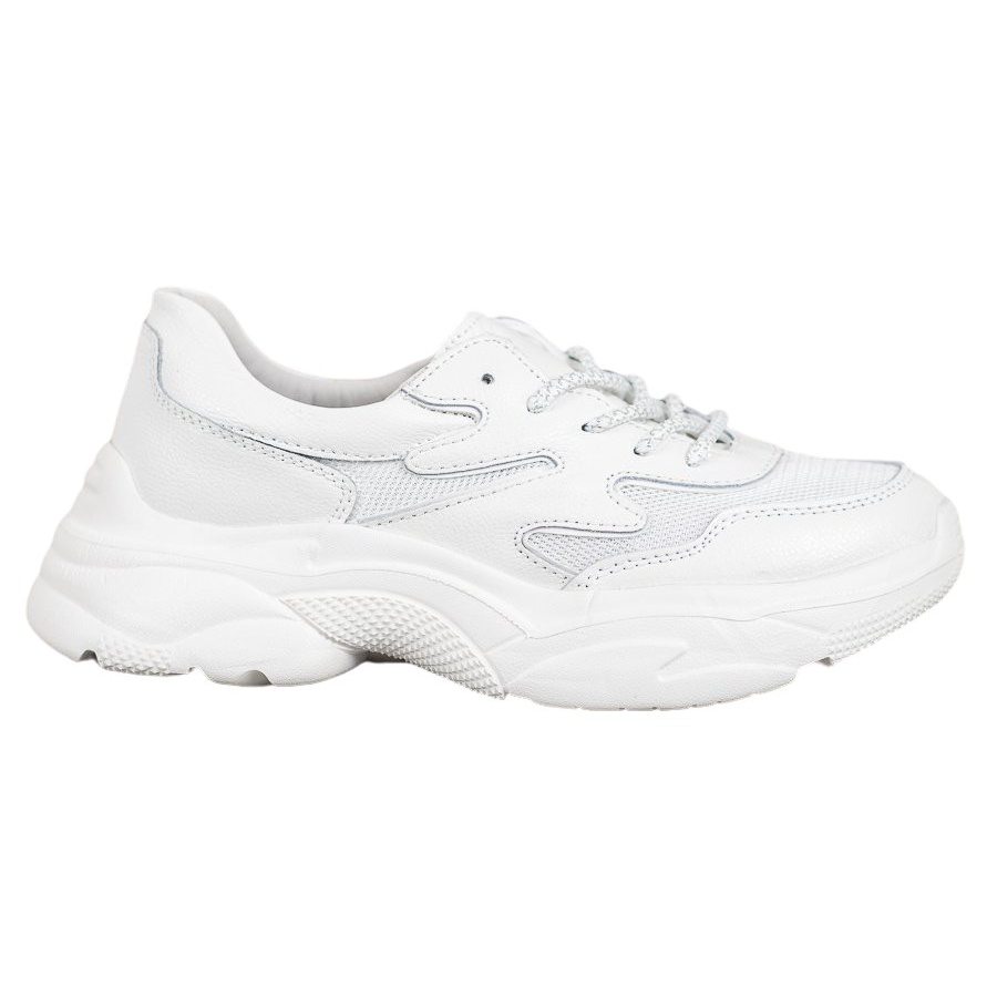 La chiusura elastica con lacci consente un facile adattamento al piede, mentre l'interno rivestito in similpelle e le solette in pelle naturale garantiscono una piacevole sensazione quando indossate. Queste sneakers bianche hanno un design minimalista, che le rende adatte a vari stili: dallo sportivo casual agli abbinamenti più eleganti.