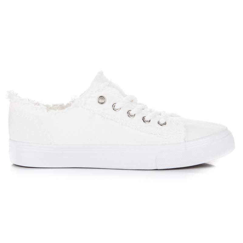 Realizzate in tessuto di alta qualità, le sneakers bianche assicurano comfort per tutto il giorno. La punta tonda e il tallone morbido incorporato garantiscono comfort, mentre la chiusura con lacci consente una perfetta aderenza al piede. Grazie alla suola in gomma con battistrada, ogni goccia di pioggia o leggera irregolarità del terreno non costituisce un ostacolo, e potrai goderti un passo sicuro.