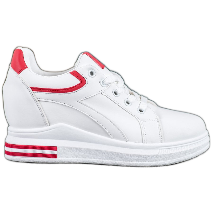 Cerchi la perfetta combinazione tra stile sportivo e comfort? Queste sono le sneakers con zeppa di Lovery, che deliziano non solo per il loro design, ma anche per la loro funzionalità. Realizzate in similpelle di alta qualità in un colore bianco alla moda con applicazioni rosse, queste scarpe sono un'ottima scelta per una donna moderna che vuole sentirsi alla moda ogni giorno.