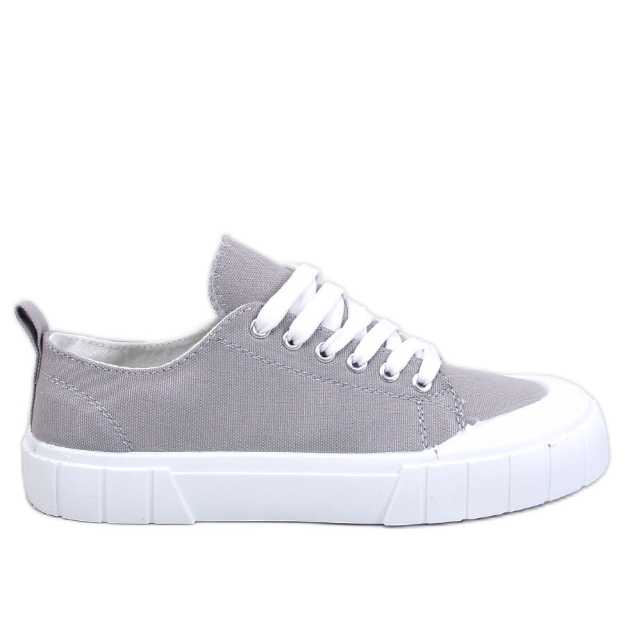 L'interno delle scarpe è imbottito di tessuto, il che le rende estremamente comode, ideali sia per una passeggiata in città, sia per incontri casuali con gli amici. Un motivo liscio e un elegante colore grigio fanno in modo che le sneaker si fondono perfettamente con vari abiti: dai jeans agli abiti estivi.