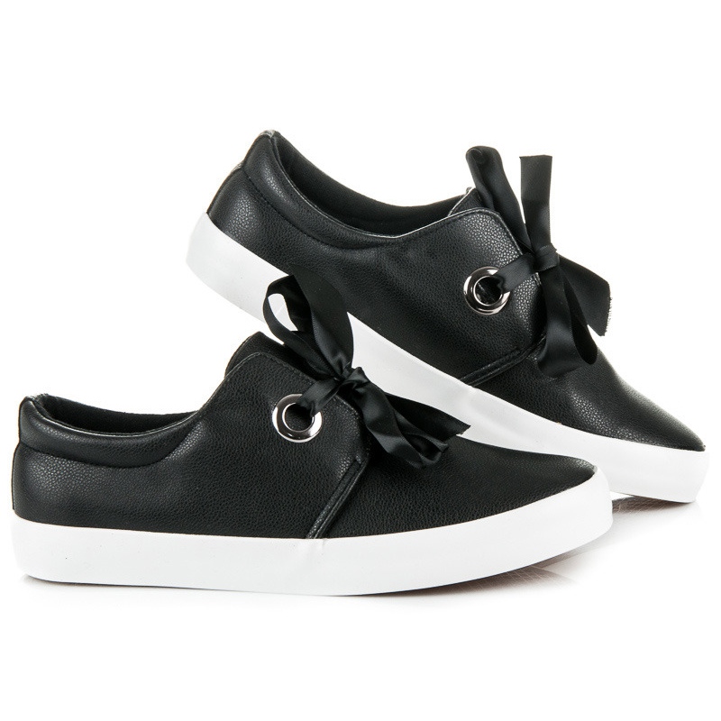 Scopri una nuova dimensione di comfort e stile con le sneakers Seastar Ribbon-Tied in nero. Queste esclusive sneakers da donna sono realizzate in pelle ecologica di alta qualità, che le rende non solo alla moda, ma anche rispettose dell'ambiente. Grazie al design slip-on e all'elegante nastro decorativo annodato tramite anelli più grandi a forma di cerchio, queste scarpe saranno il complemento perfetto per qualsiasi stile quotidiano.