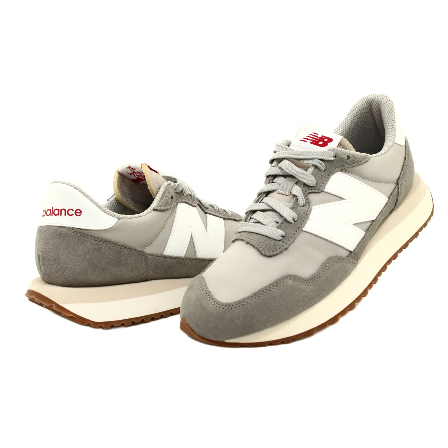 Sneaker di scarpe New Balance MS237GE in grigio è la scelta perfetta per gli uomini che apprezzano una combinazione di stile e comfort nell'uso quotidiano. La serie 237 è ispirata ai modelli sportivi classici, ma offre un tocco moderno, che si rivolge sia ai fan retrò che agli amanti della tendenza freschi.
