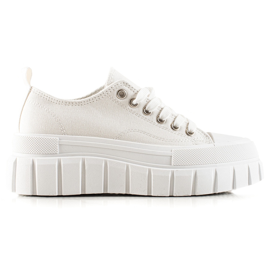 Questo modello ha una solida piattaforma di 5,5 cm, che non solo aumenta il comfort, ma allunga anche otticamente le gambe. La chiusura con lacci ti consente di adattare le calzature alle tue esigenze individuali, mentre il morbido contrafforte integrato sul tallone fornisce un supporto aggiuntivo per il piede. Le sneakers sono realizzate interamente in materiali tessili, il che le rende leggere e ariose, perfette per la primavera e l'estate, ma perfette anche per i mesi più freddi dell'autunno e dell'inverno.