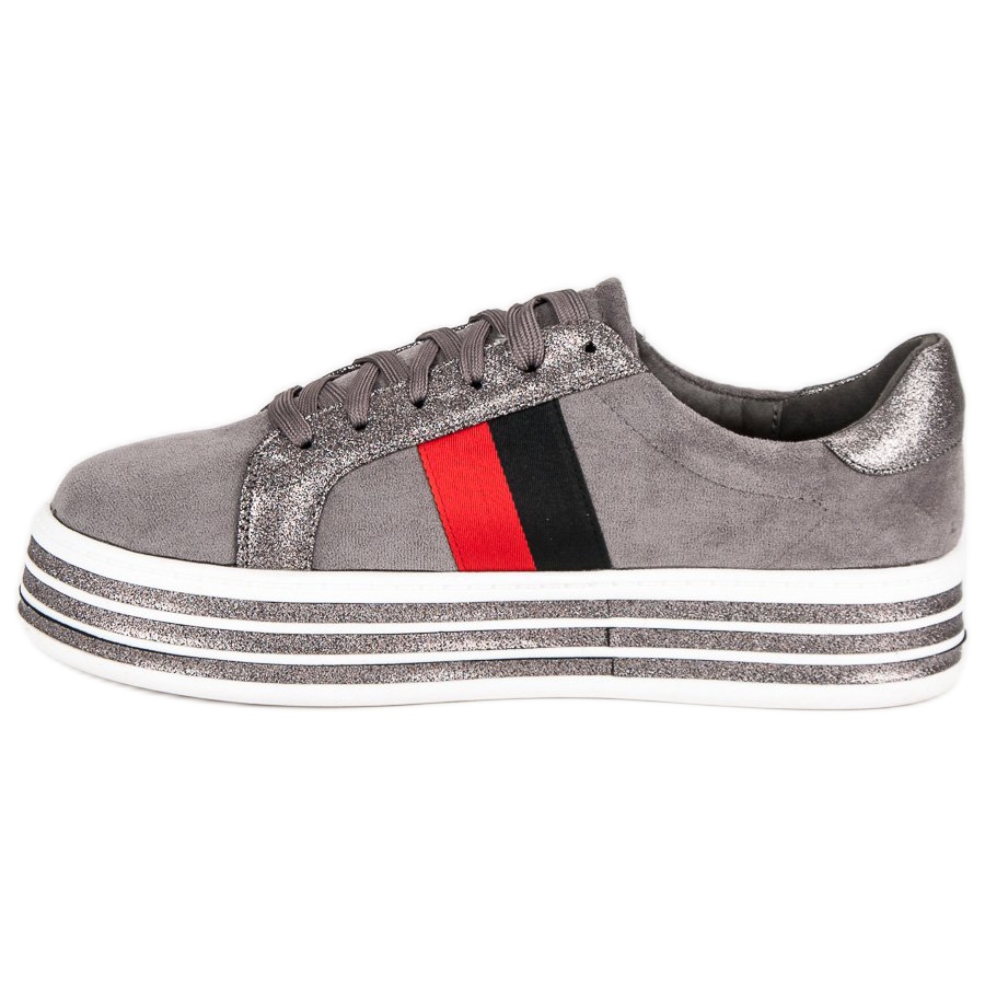 Cerchi delle calzature che uniscano la comodità ad un look alla moda? Le sneakers con plateau VICES in grigio sono la scelta perfetta per ogni donna che vuole enfatizzare il suo stile originale negli outfit di tutti i giorni. Grazie ai dettagli colorati e lucenti, queste scarpe attireranno sicuramente l'attenzione e diventeranno un'aggiunta attraente al tuo guardaroba.