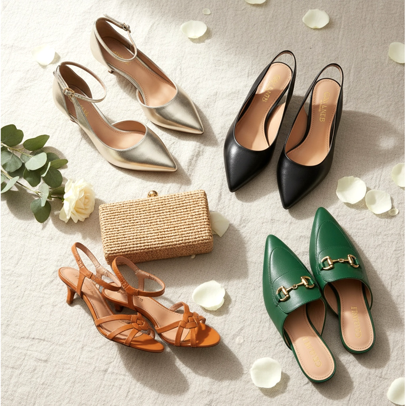 Mules e mocassini slingback: Le tendenze della primavera 2026 portano anche interpretazioni più casual dell’eleganza. Mocassini slingback o sabot a tacco basso sono un'ottima scelta per i matrimoni meno formali.