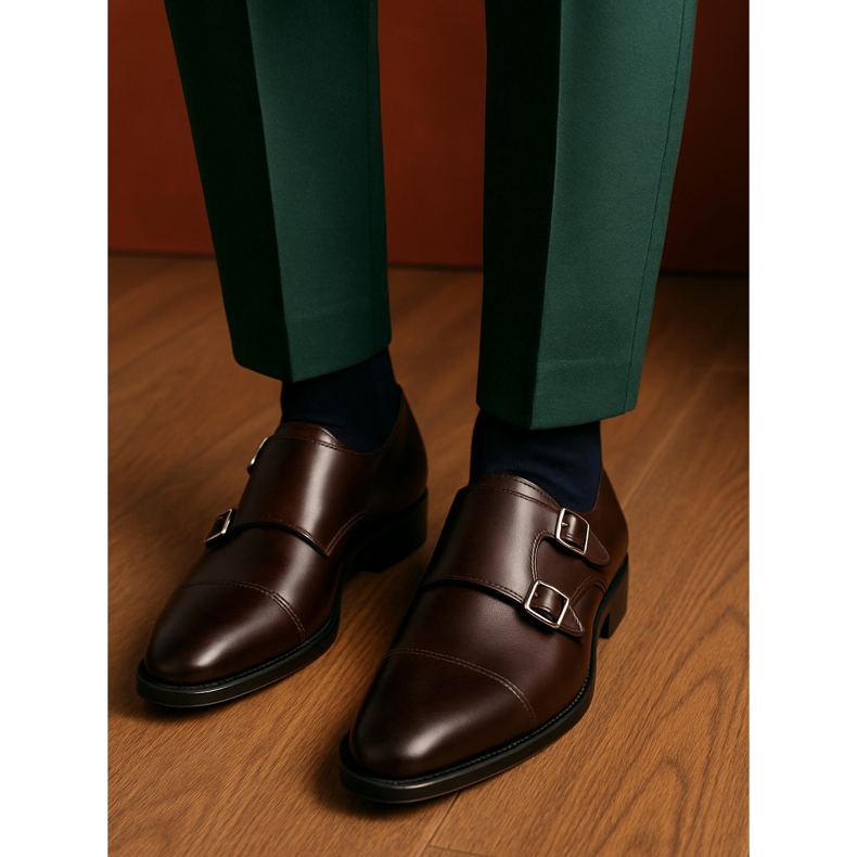Le monaci, cioè le scarpe con fibbia al posto dei lacci, sono un'alternativa alla moda alle classiche scarpe stringate. Il monaco singolo (una fibbia) è più discreto, il monaco doppio (due fibbie) è più espressivo. Si abbinano perfettamente ad abiti moderni e slim fit in colori insoliti: blu navy, vino, verde bottiglia. Le monaci in marrone scuro o nero saranno perfette per un matrimonio urbano, industriale o glamour. Questa è una scelta per uomini sicuri di sé che vogliono distinguersi con stile mantenendo l'eleganza.