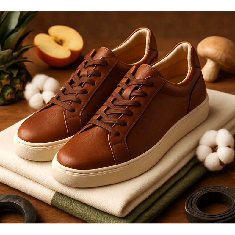 - Pelle vegana: Alternative vegetali (Piñatex dall'ananas, Pelle di fungo dai funghi, Pelle di mela dalle mele)