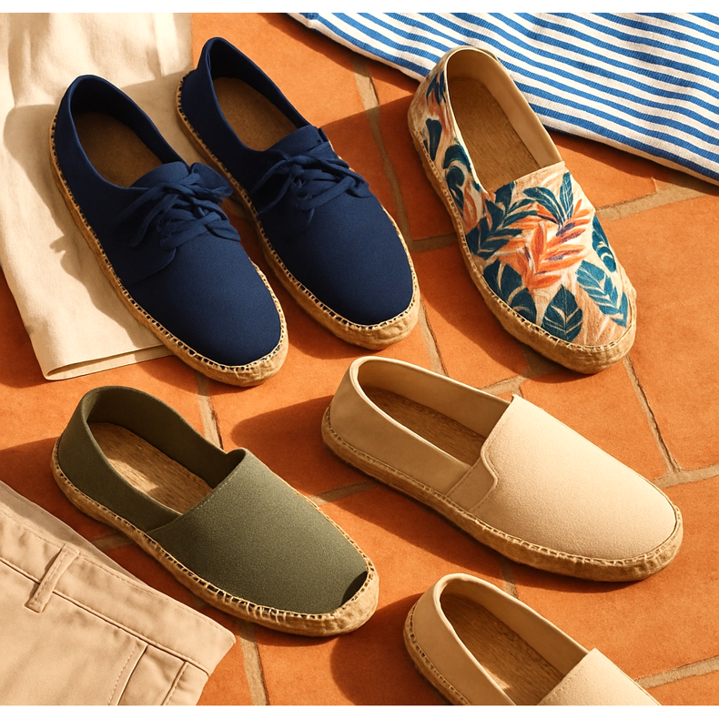 Le espadrillas sono iconiche scarpe estive realizzate in tela o lino con la caratteristica suola in iuta intrecciata. Leggero, arioso, perfetto per la stagione calda. Disponibili in versione slip-on (senza o con tacco), stringate o con elastico. Colori: beige classico, blu navy, kaki e stampe e fantasie più audaci. Si abbinano perfettamente a pantaloni corti, pantaloni in lino e chino in stile casual estivo. Anche le espadrillas in stile sneaker con suola in gomma più spessa hanno guadagnato popolarità: sono più universali e comode. Meno: la suola in materiali naturali non è impermeabile e non è adatta alla pioggia. Le espadrillas simboleggiano il relax mediterraneo e lo stile di vita vacanziero.
