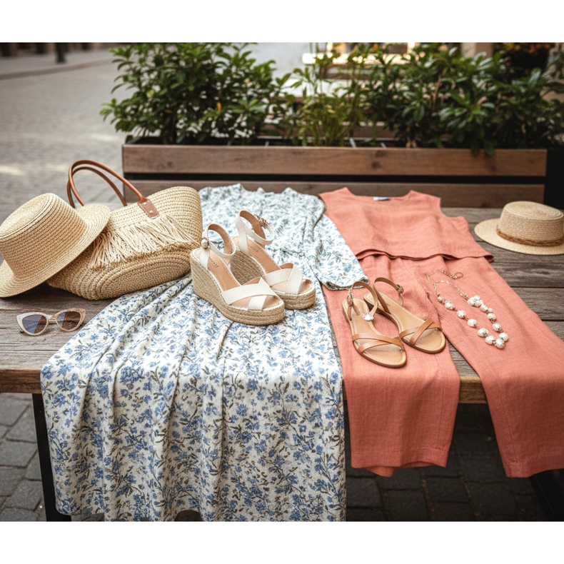Passeggiata serale sul lungomare: È tempo di un po' più di eleganza. Un abito di seta o raso scollato, sandali a tacco alto o delicati e accessori dorati minimalisti: l'effetto è eccezionalmente femminile e sofisticato.