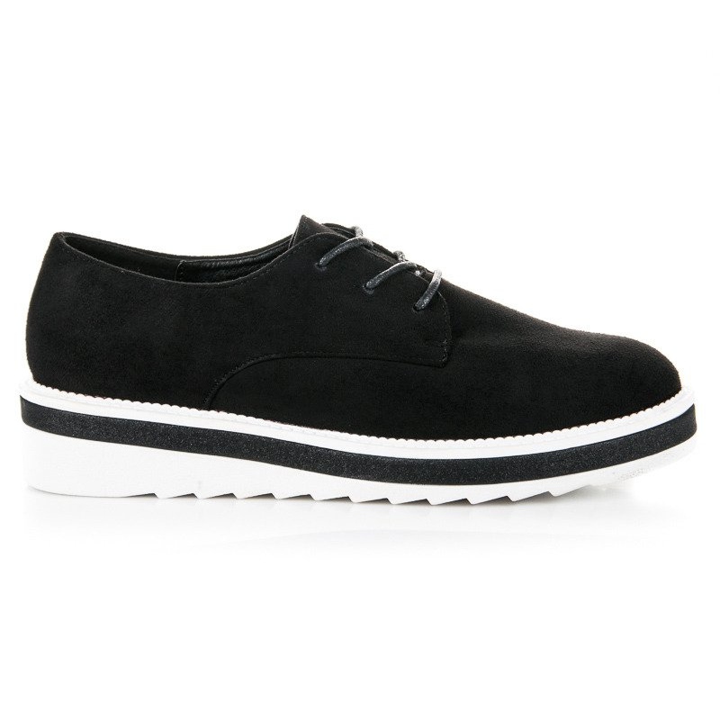 Il loro classico colore nero li rende abbinabili a molti outfit, e l'elegante naso rotondo conferisce loro un fascino discreto. L'interno delle scarpe è rifinito con pelle ecologica, che garantisce comfort da indossare tutto il giorno. La chiusura con lacci consente una perfetta aderenza al piede e il tallone irrigidito integrato fornisce stabilità e supporto.
