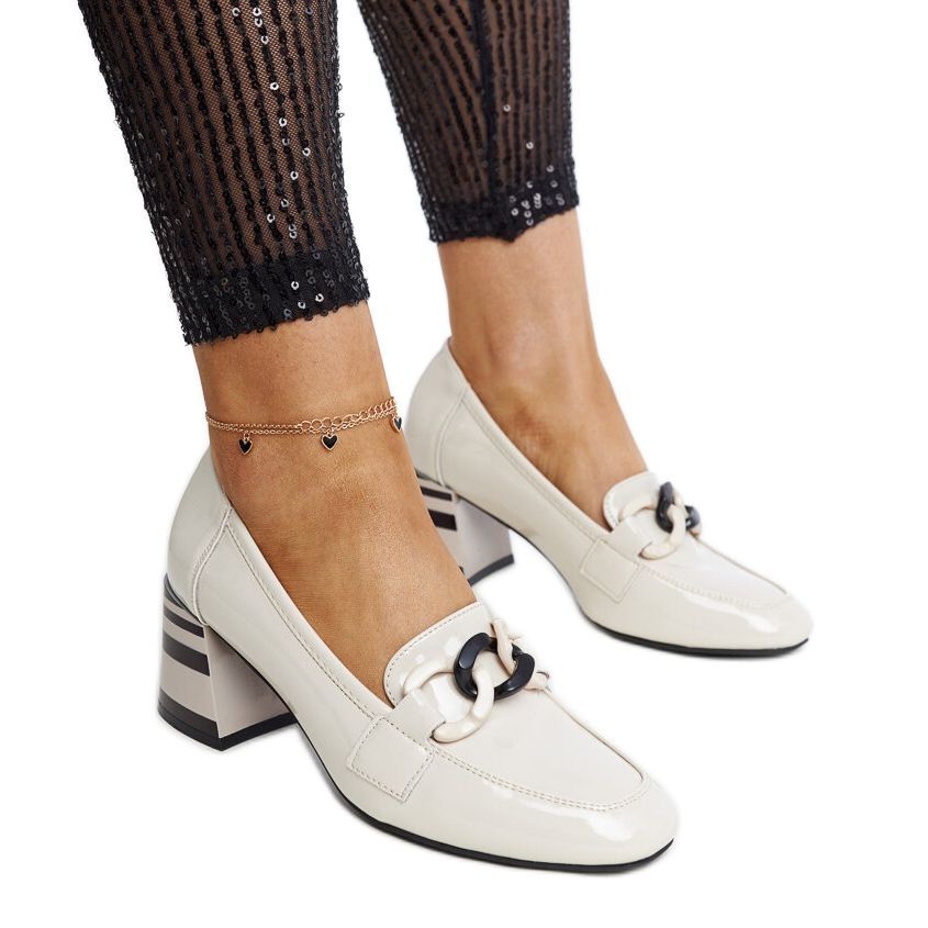 Grazie alla punta rotonda e al design basso, queste scarpe slip-on saranno un'ottima scelta da indossare tutti i giorni, indipendentemente dall'occasione. L'altezza del tacco di 5,5 cm li rende perfetti per le donne che apprezzano sia la comodità che uno stile leggermente più alto. Un ulteriore vantaggio è una catena attraente che dà loro un tocco alla moda.