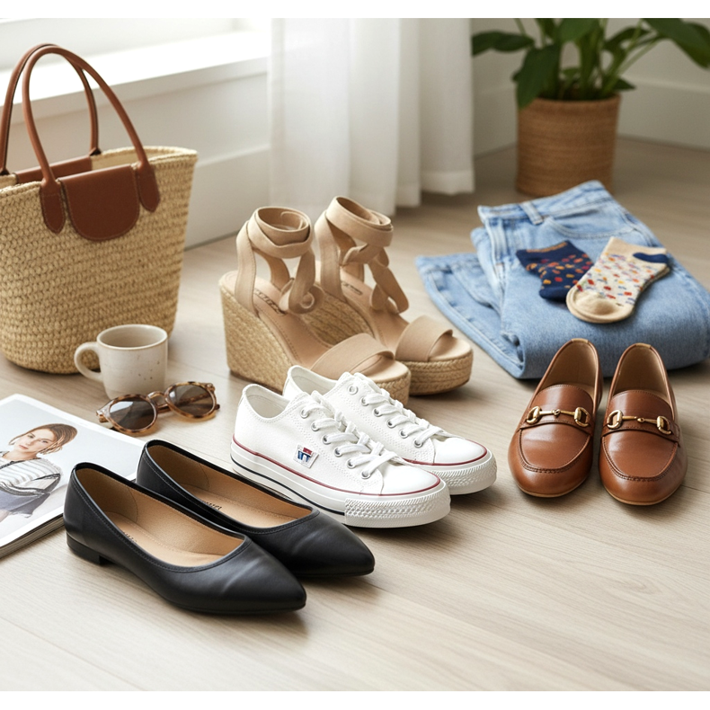 Per le amanti delle soluzioni più eleganti, ballerine a punta o mocassini saranno la soluzione perfetta. Questi modelli classici sono perfetti per i mom jeans e altri stili di tutti i giorni. Scegli modelli in colori tenui: nero, beige o marrone.