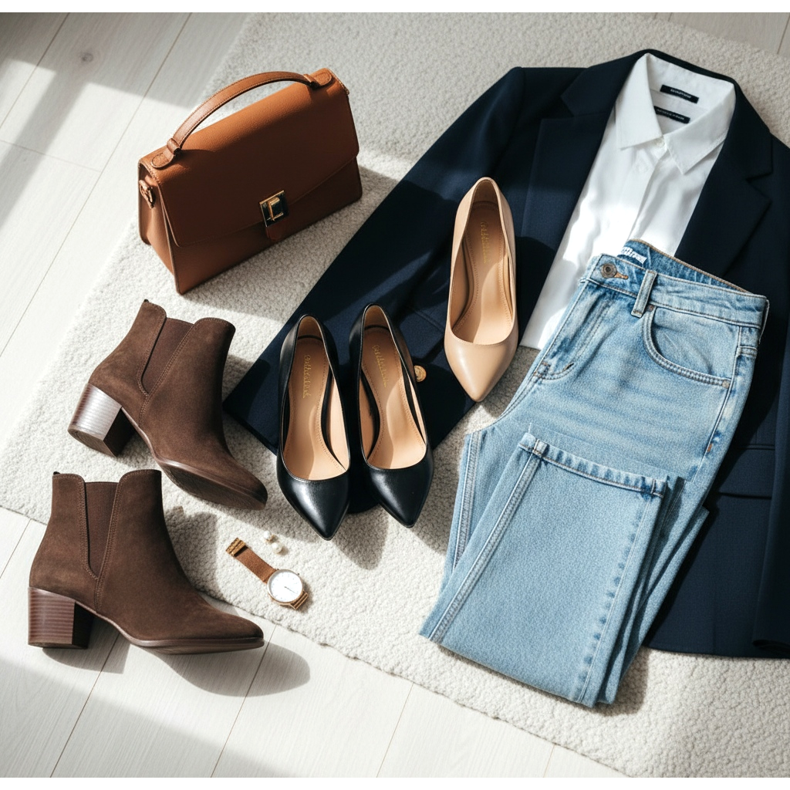 Anche le scarpe dai colori neutri - nero, beige o marrone - sono una soluzione sicura. Questi colori si abbinano alla maggior parte degli stili e funzioneranno bene sia in ufficio che nella vita quotidiana.