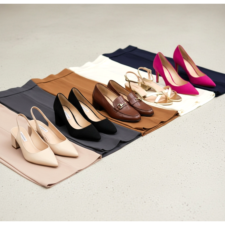 Anche le scarpe dai colori neutri - nero, beige o marrone - sono una soluzione sicura. Questi colori si abbinano alla maggior parte degli stili e funzioneranno bene sia in ufficio che nella vita quotidiana.