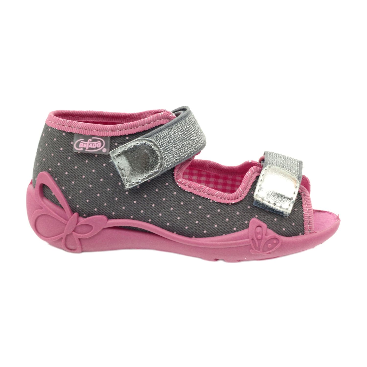 Scopri le esclusive calzature per bambini Befado 242P082 nei colori rosa, argento e grigio: perfette per i piedini che muovono i primi passi! Consigliati dagli ortopedici, questi sandali uniscono sicurezza, comfort e design alla moda, rendendoli un'ottima scelta per le giornate soleggiate.