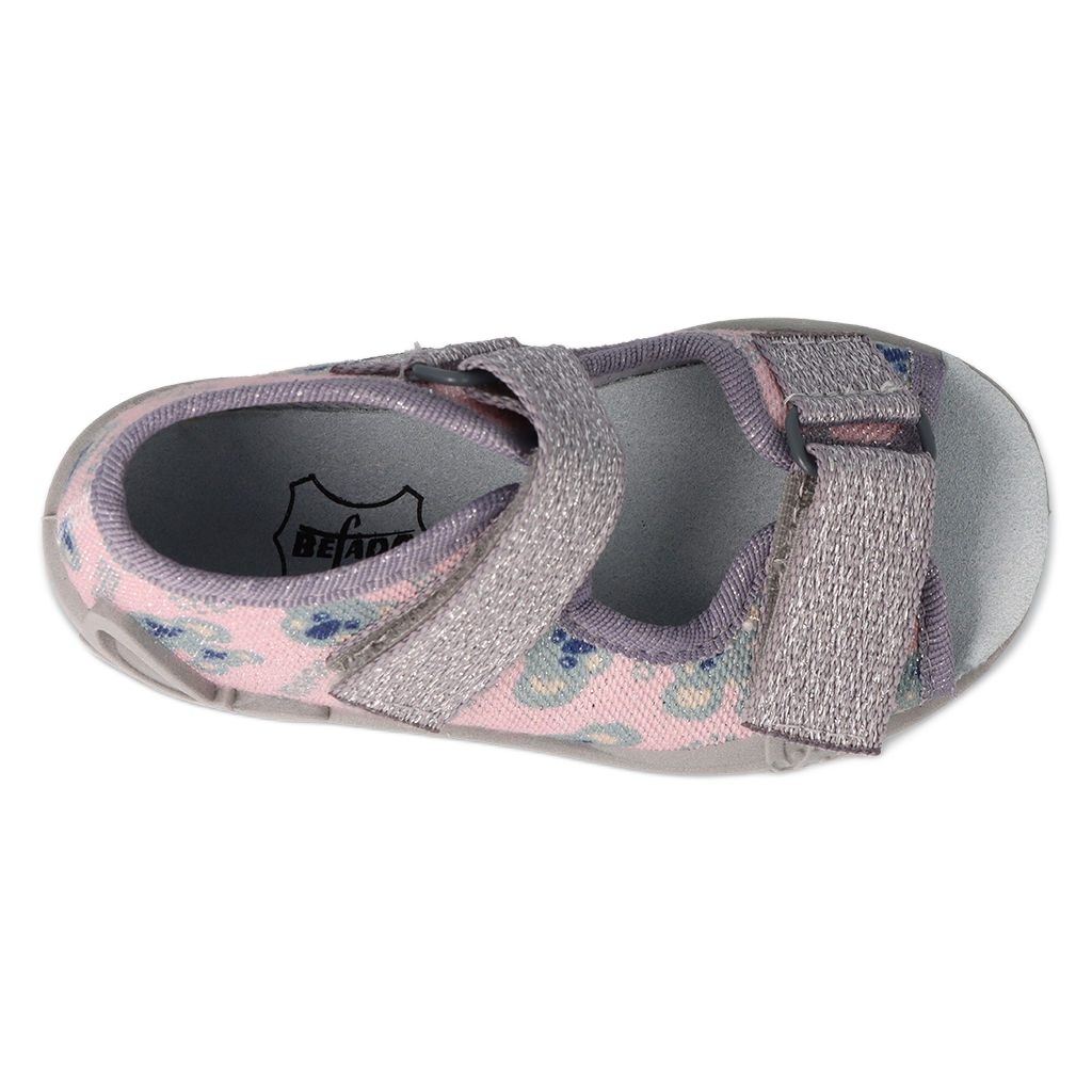 Comfort e sicurezza mentre giochi all'asilo - Ecco come puoi descrivere Befado 342P050. Le scarpe sono state progettate per le esigenze di piccoli piedi: un tallone rigido e lati stabili mantengono la posizione corretta del piede e le dita scoperte forniscono ulteriore ventilazione. Le tomaie sono realizzate in tessuto arioso di cotone, che aumenta il comfort di indossare e le cure di inserto in pelle di igiene e comfort. Un semplice sistema di fissaggio in chiusura strappo consente al bambino di indossare e abbinare le calzature in modo indipendente.
