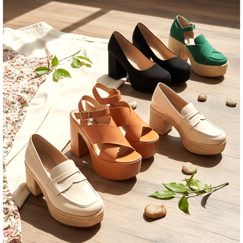 I colori delle piattaforme per la primavera 2026 sono principalmente tonalità naturali: beige, marrone caramello e delicati colori rosa. Tuttavia, ci sono molti accenti sotto forma di verde brillante o nero classico, che si abbinano a tutto.