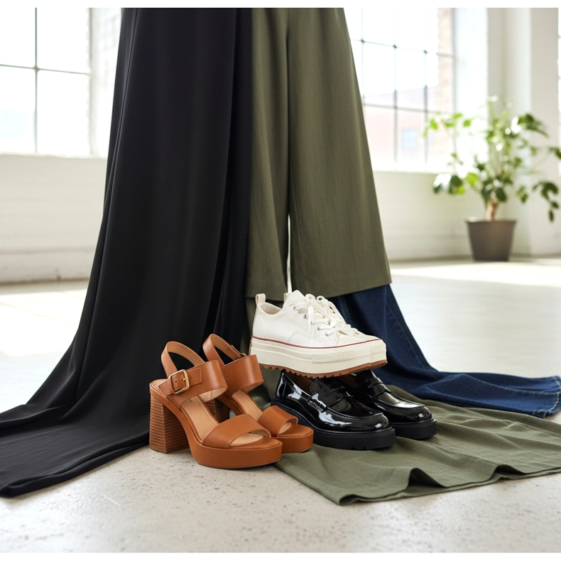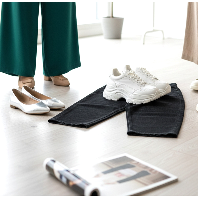 Abbinare le scarpe ai pantaloni palazzo ampi è un'abilità che si basa su poche semplici regole. Per prima cosa, aggiungi l'altezza: un tacco, un plateau o una suola spessa sono i tuoi alleati. In secondo luogo, abbina la lunghezza della gamba dei pantaloni all'altezza della scarpa: questo è fondamentale per le proporzioni. Terzo, scegli stili sottili e appuntiti che bilanciano il volume delle gambe larghe.