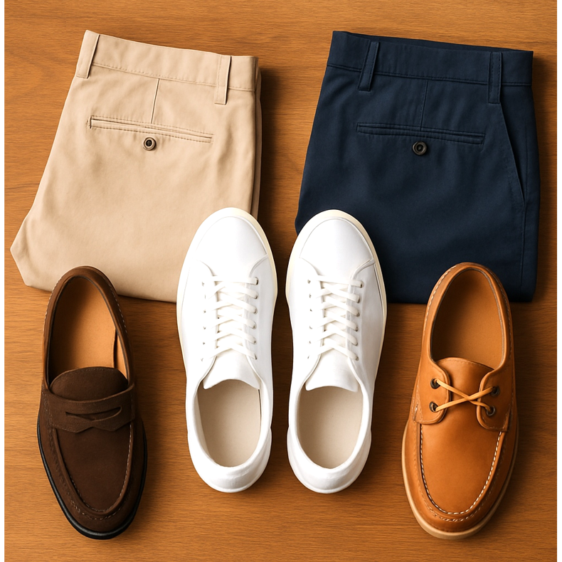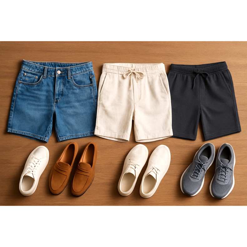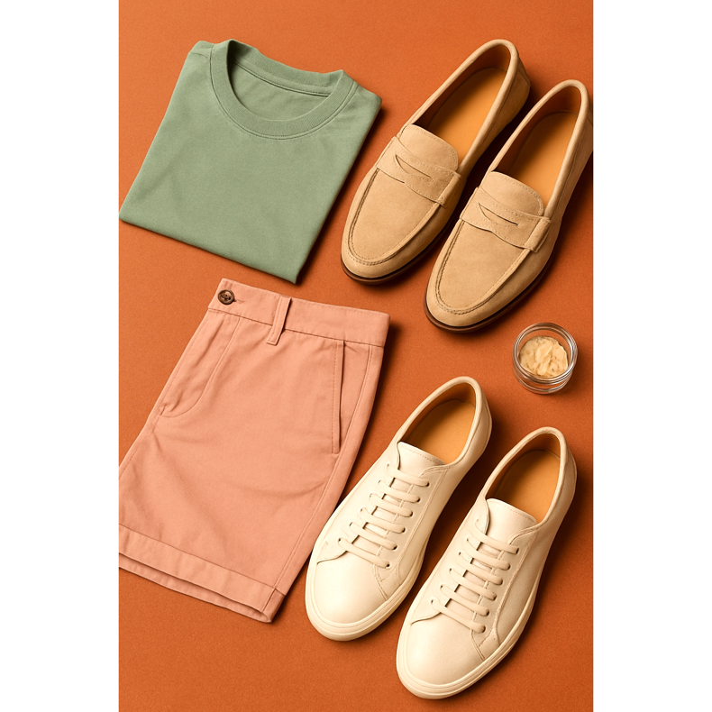 Pantaloncini chiari (beige, bianco) → scarpe più scure (blu navy, marrone).