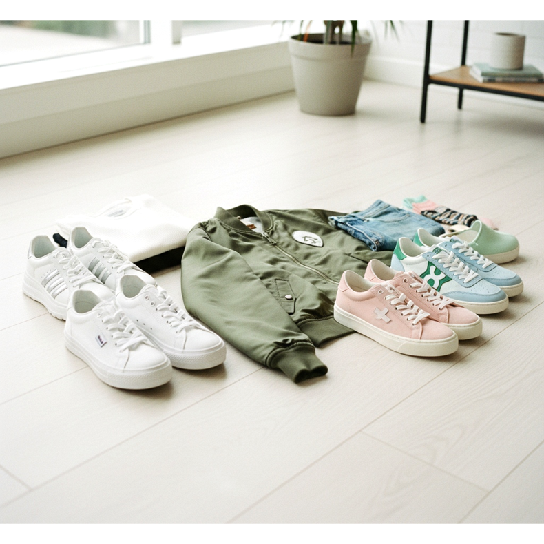 Se vuoi aggiungere un po' di colore al tuo outfit, puoi scegliere scarpe da ginnastica in tonalità pastello: rosa, blu o verde. Queste scarpe bomber sono perfette per la primavera e l'estate, creando un look fresco e giovanile.