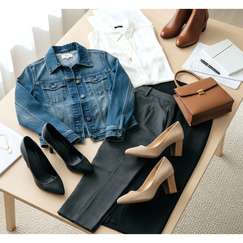 Scarpe eleganti con giacca in denim per l'ufficio
