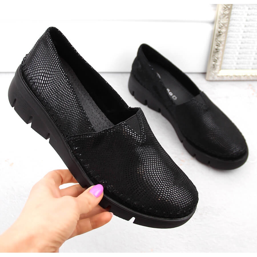 La zeppa alta 5 cm garantisce comfort e slancia la silhouette, mentre la chiusura slip-on facilita la calzata e la sfilata veloce. Le scarpe sono disponibili in un elegante colore nero, che aggiunge un tocco di lusso a qualsiasi guardaroba. Perfette per il lavoro, le riunioni o le serate fuori, queste scarpe uniscono la moda alla praticità.