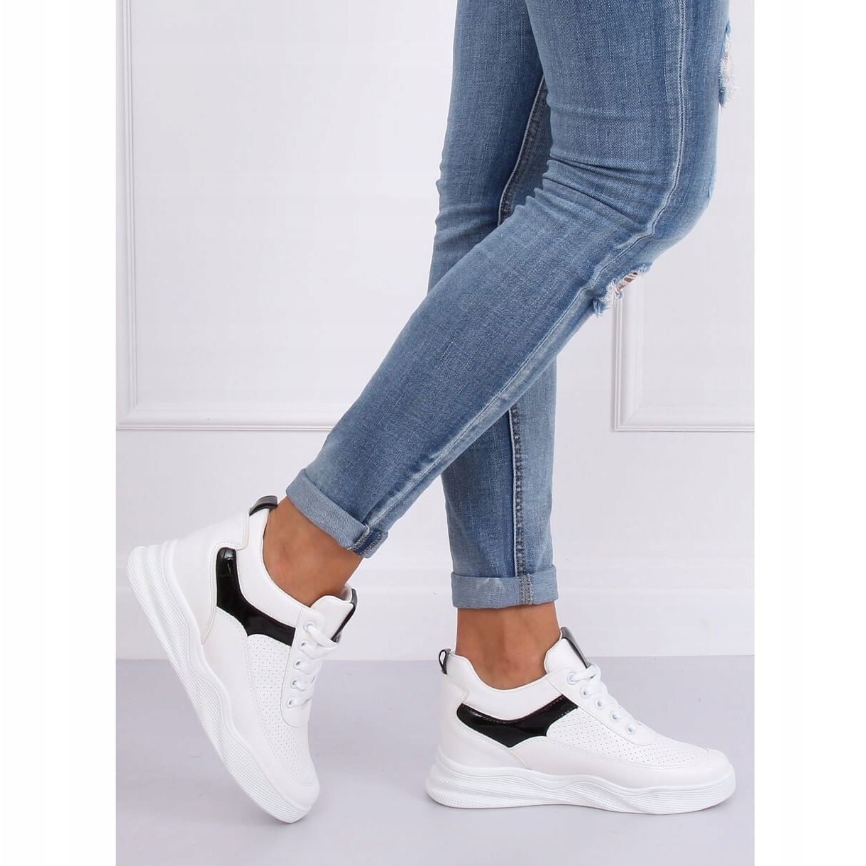 Dettagli: Scarpe sportive bianche con zeppa 85-429 BIANCO/NERO
