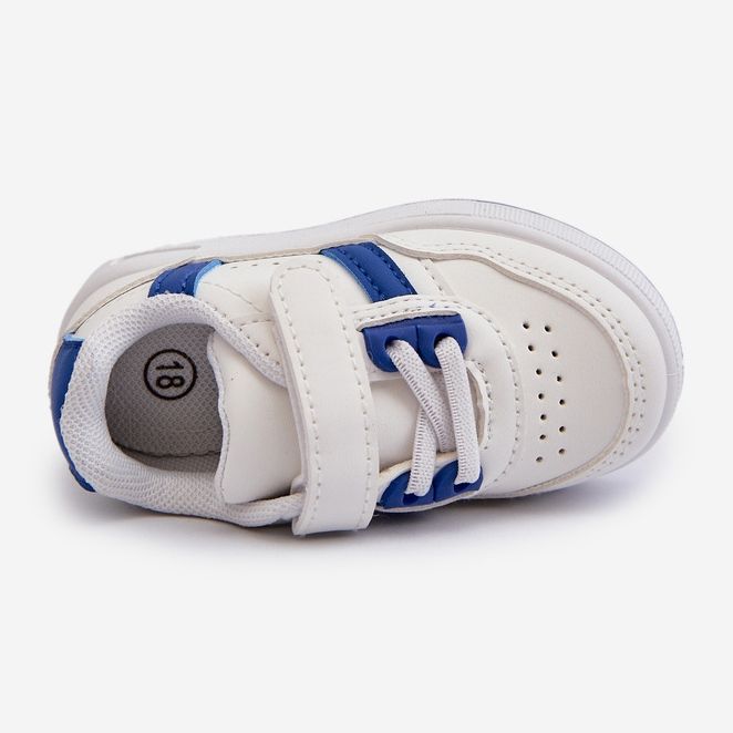 Ecco le classiche scarpe sportive per bambini blu bianchi, la modella Marlin. Queste sneaker eleganti sono state create per i più giovani, combinando comfort con il design alla moda. Realizzati in pelle ecologica di alta qualità, sono caratterizzati da una delicata perforazione nella parte anteriore, che aggiunge loro fascino e fornisce un'adeguata ventilazione.