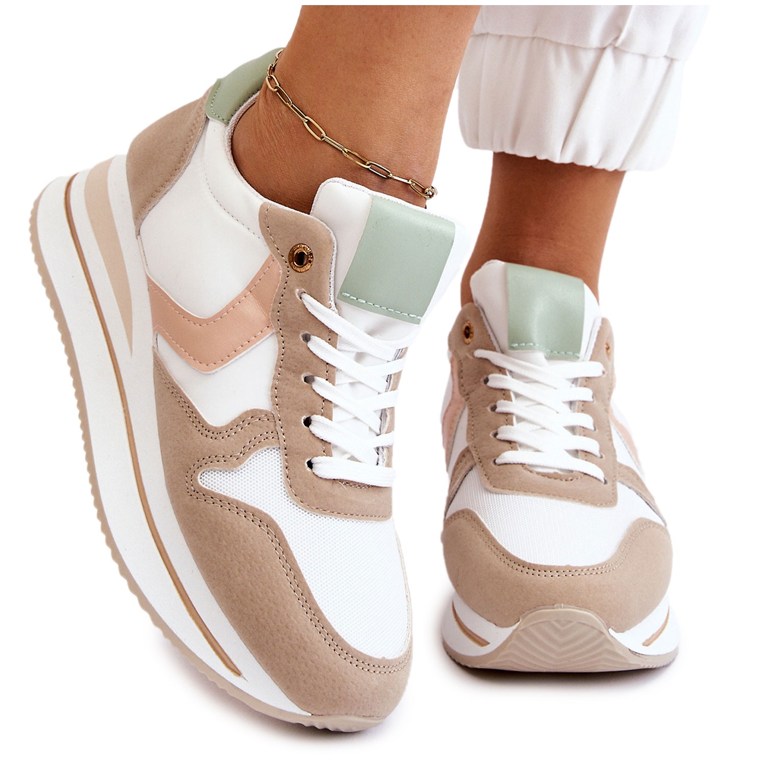 Dettagli: PG1 Scarpe Sportive Con Zeppa Da Donna Bianche E Beige Neva bianco