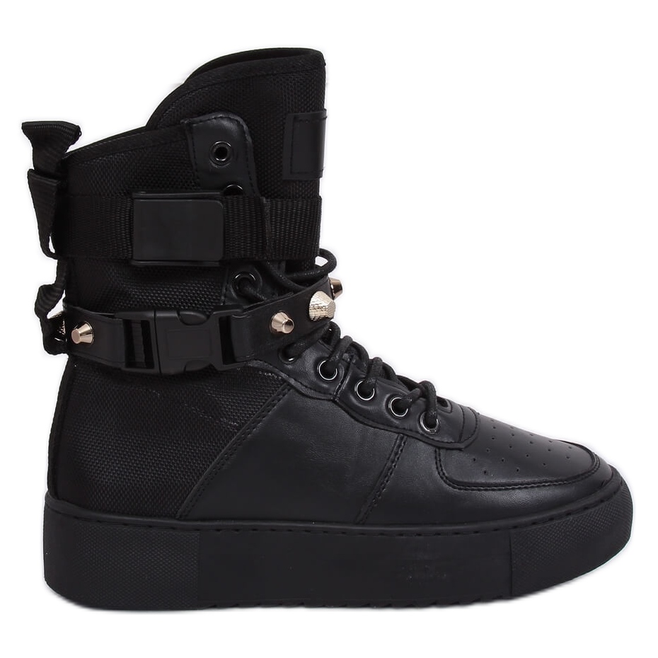 Le scarpe sportive Y-025 nere hanno una tomaia alta che arriva sopra la caviglia, fornendo un supporto aggiuntivo. Il loro design si basa su una suola alta, che non solo è una tendenza della stagione in corso, ma offre anche un'eccellente ammortizzazione.
