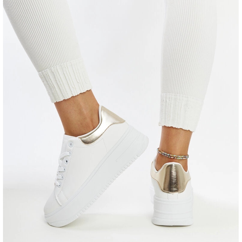Queste sneaker basse e alla moda sono un vero must per ogni donna che apprezza una combinazione di stile sportivo ed eleganza. Le scarpe a piattaforma bianche possono essere facilmente combinate con varie stilizzazioni, dai jeans agli abiti sportivi. Grazie a ulteriori accenti dorati, l'A110 del marchio Gemre si distingue dagli altri, aggiungendo un sottile bagliore ai tuoi abiti.