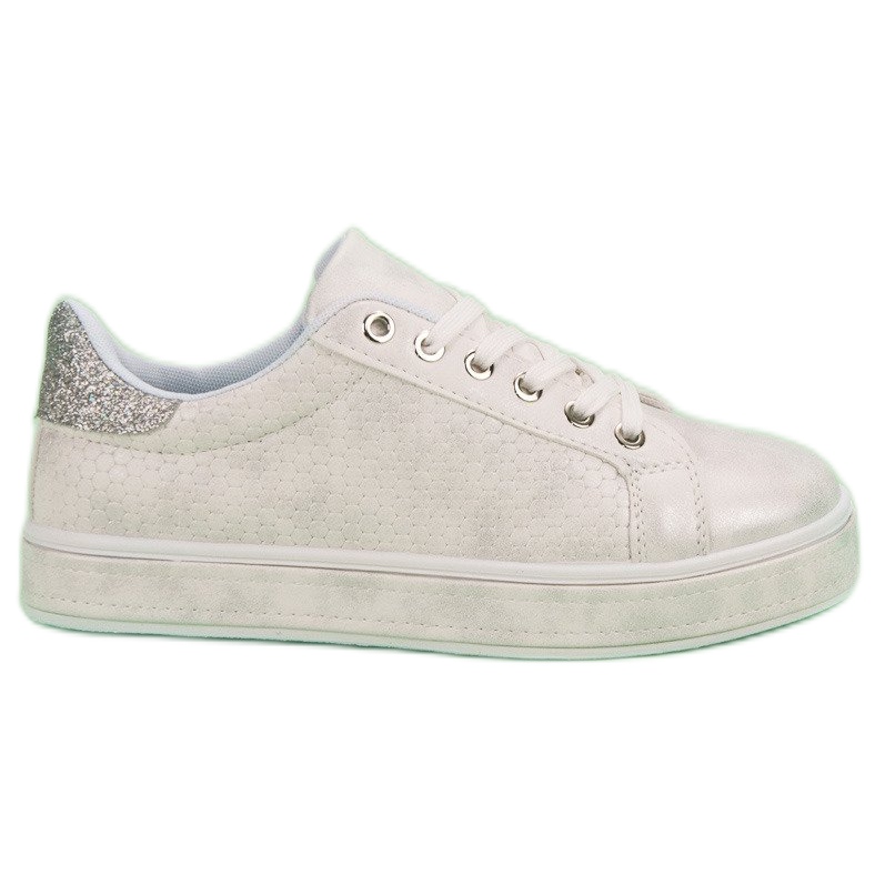 Ecco una scelta elegante e alla moda per ogni donna attiva: calzature sportive stringate bianche, perfette per lo stile primaverile ed estivo. Queste scarpe uniche sono caratterizzate non solo dal classico colore bianco, ma anche da sottili glitter e accenti lucenti che le rendono espressive.