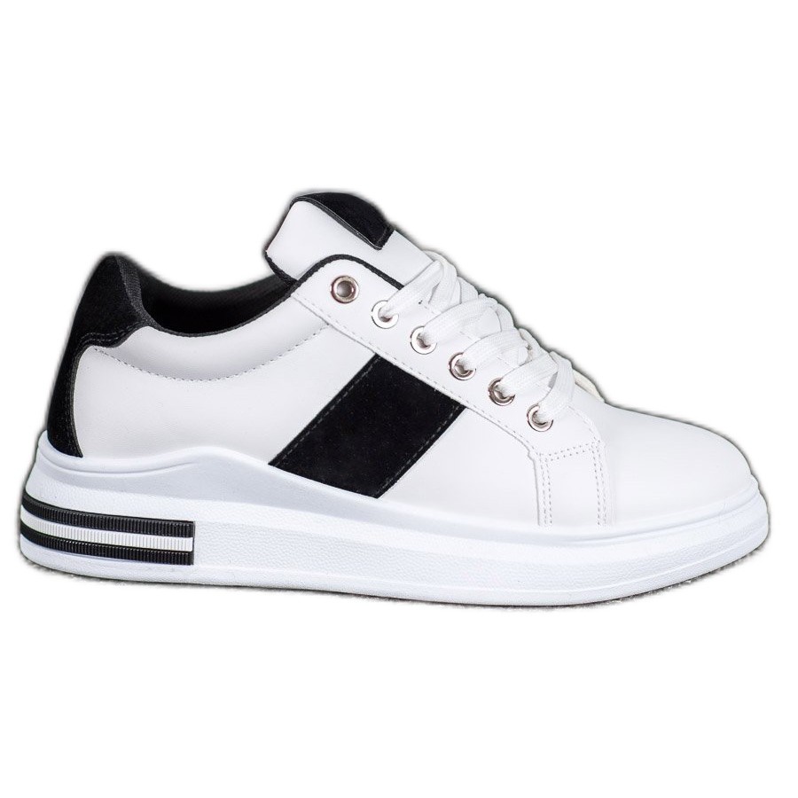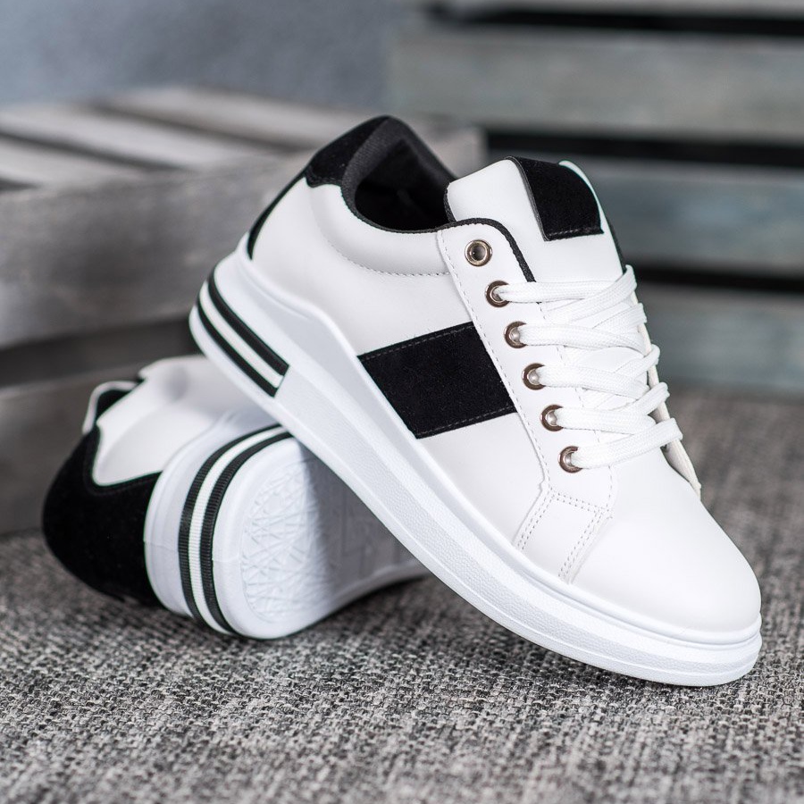 Le scarpe sportive stringate SHELOVET sono un modello unico che dona eleganza allo stile di tutti i giorni. Realizzate con materiali di alta qualità, tra cui similpelle e finta pelle scamosciata, queste scarpe bianche con inserti neri uniscono comfort e design alla moda.