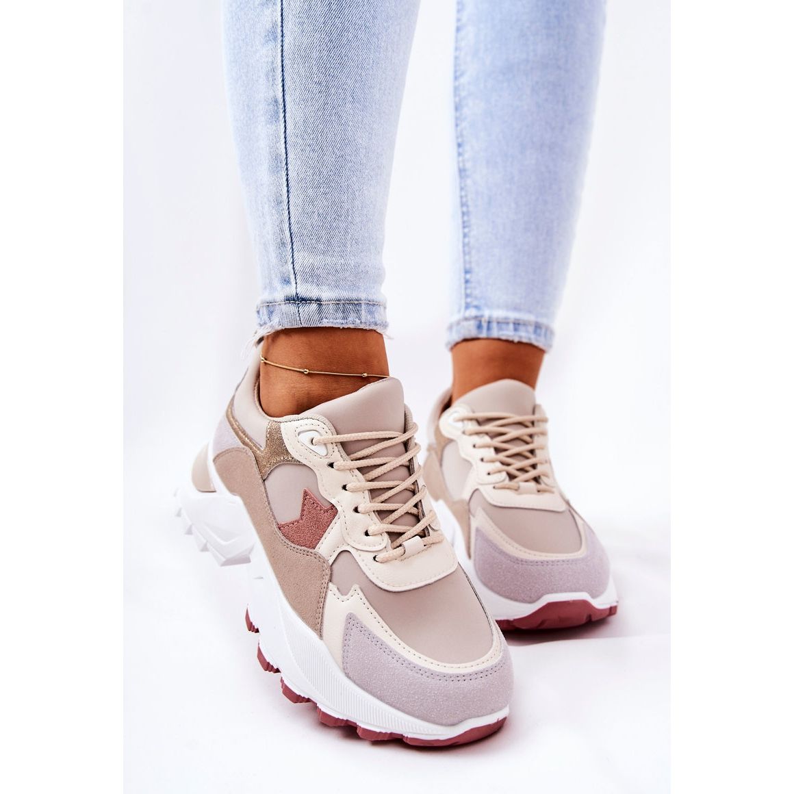 Dettagli: Scarpe sportive sulla piattaforma Berenice beige-rosa