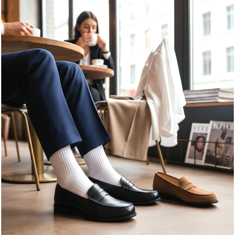 Il quinto e più versatile paio di guardaroba capsula sono i mocassini. Questo stile, derivato dalla tradizione della moda preppy e accademica, sta vivendo un vero e proprio rinascimento di popolarità nel 2026. I classici mocassini in pelle si adattano ugualmente bene con l'abbigliamento da ufficio e con un outfit casual per il fine settimana.