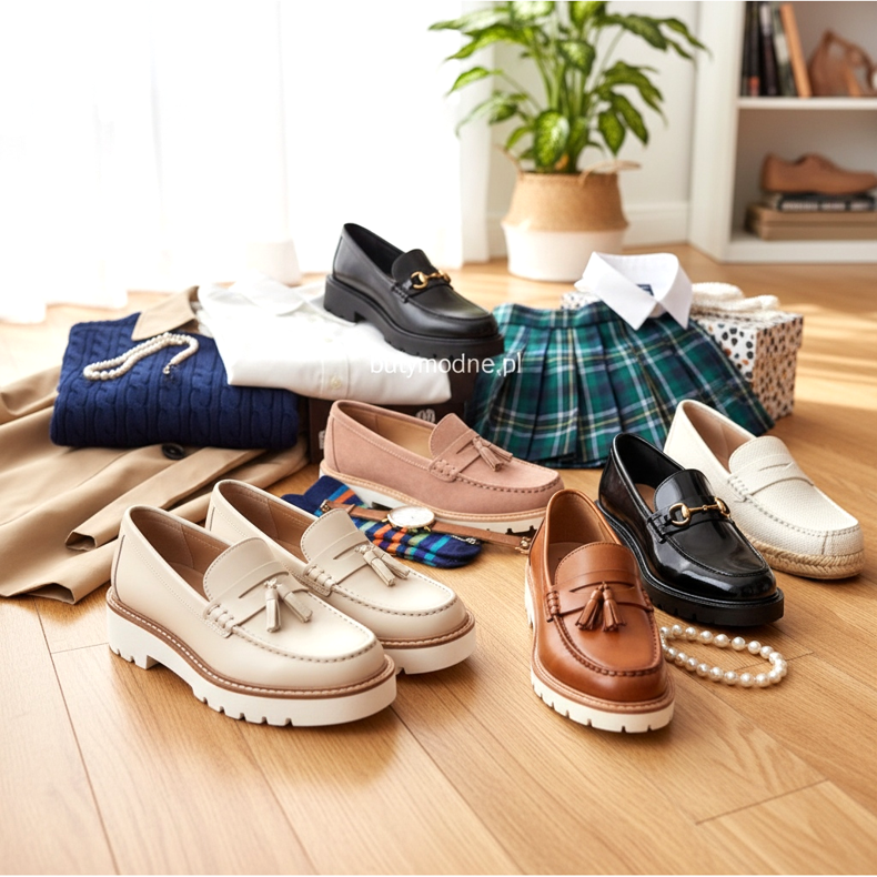 I mocassini, ovvero le scarpe slip-on senza lacci, sono il cuore dello stile preppy. Nella stagione primaverile 2026, questo modello supera tutti i confini: può essere indossato sia con abiti da lavoro formali che con uno stile denim casual. Le passerelle sono dominate da versioni realizzate in morbida pelle strutturata in tonalità naturali: beige, caramello, caldo oliva e classico nero.