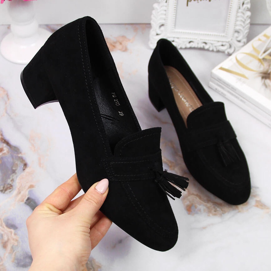 Il modello si distingue per un tacco largo stabile con un'altezza di 4,5 cm, che rende la camminata non stancante e allo stesso tempo aggiunge la giusta altezza. Un ulteriore vantaggio sono le frange eleganti che conferiscono alle scarpe un carattere unico. La chiusura slip-on li rende facili da indossare e da togliere, rendendoli una scelta ancora più pratica.
