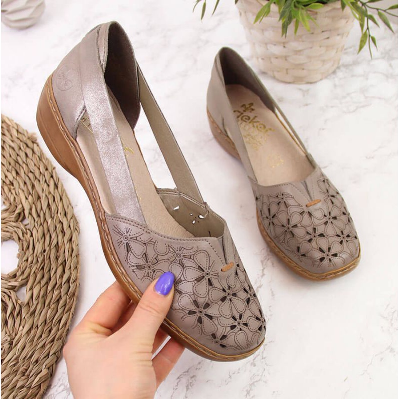 Una proposta leggera e confortevole del ben noto marchio Rieker - Openwork Women's Shoes 41356 in elegante beige di perle. Perfetto per giorni caldi: ariosi, flessibili e progettati per il massimo comfort dei piedi.