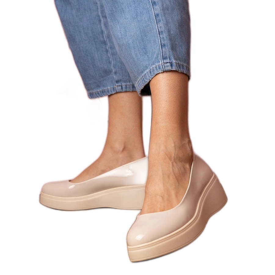 Le scarpe Varnishing di Beige sulla piattaforma sono un elemento universale di abbigliamento che va bene con jeans e gonne o abiti. Il pacchetto originale sotto forma di una scatola li rende anche un'idea regalo interessante per una persona cara. Scommetti sul comfort e sull'eleganza con il modello 5043-1!