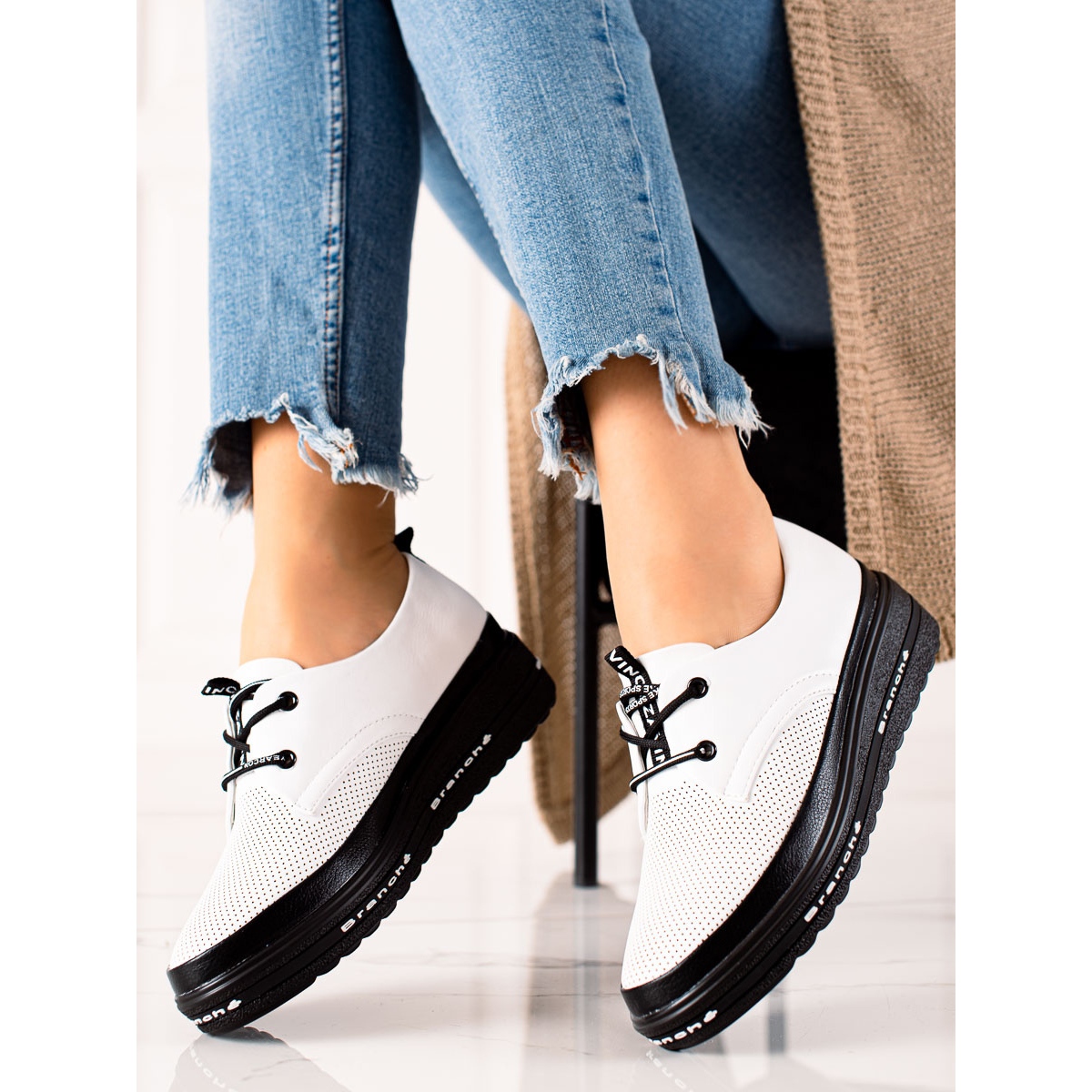 Scegli le scarpe leggere Vinceza, che saranno un'aggiunta perfetta al tuo guardaroba per la primavera, l'estate, l'autunno e l'inverno. Grazie al colore bianco universale, potrai abbinarli facilmente sia ad outfit casual che più eleganti. Concedetevi un po' di lusso e comodità scegliendo un modello che attirerà sicuramente l'attenzione!