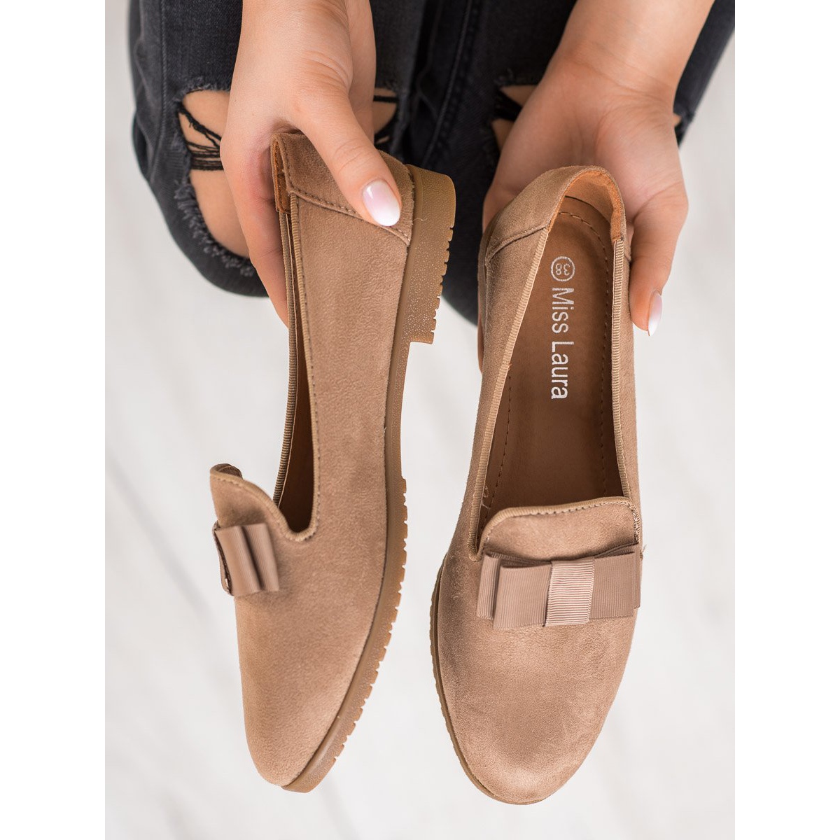 I signori Miss Laura con fiocco marrone sono la scelta ideale per le donne che cercano una combinazione di praticità ed eleganza. Il loro colore castano chiaro si abbina discretamente a qualsiasi carnagione, donando leggerezza e fascino. Realizzate in pelle scamosciata ecologica di alta qualità, queste scarpe offrono non solo un aspetto estetico, ma anche comfort da indossare.