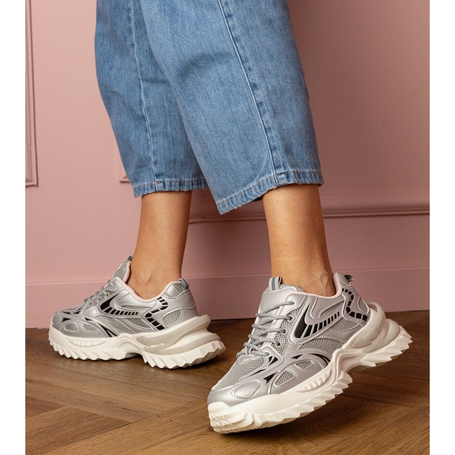 Se stai cercando calzature che combinino un personaggio sportivo con un aspetto alla moda, Silver Sports Sneakers sulla piattaforma è un'ottima scelta che soddisferà sicuramente le tue aspettative! È una combinazione di stile e conforto che ogni donna apprezza.