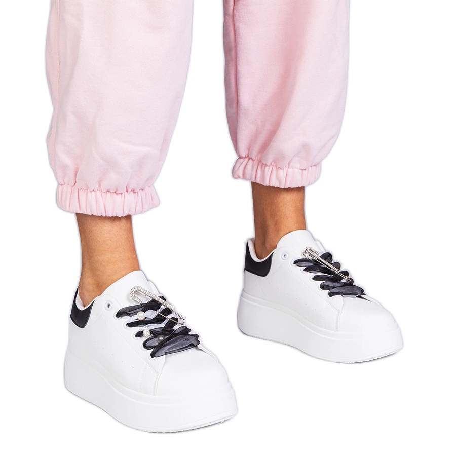 Sneaker bianche con un inserto nero e un perno di zircone bianco