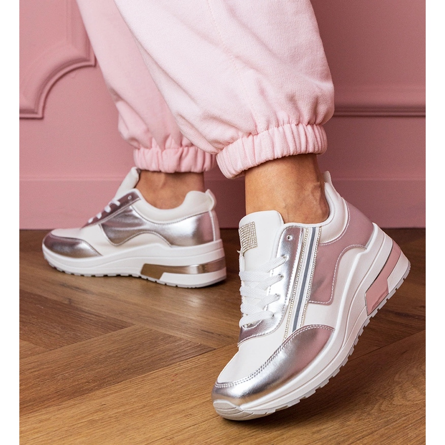 Presentiamo sneaker bianche con zirconi e un inserto metallico che diventerà un complemento perfetto per il tuo guardaroba. Queste scarpe sportive da donna uniche sono la combinazione perfetta di design moderno con comfort, che soddisferà ogni donna che apprezza sia lo stile che la funzionalità.