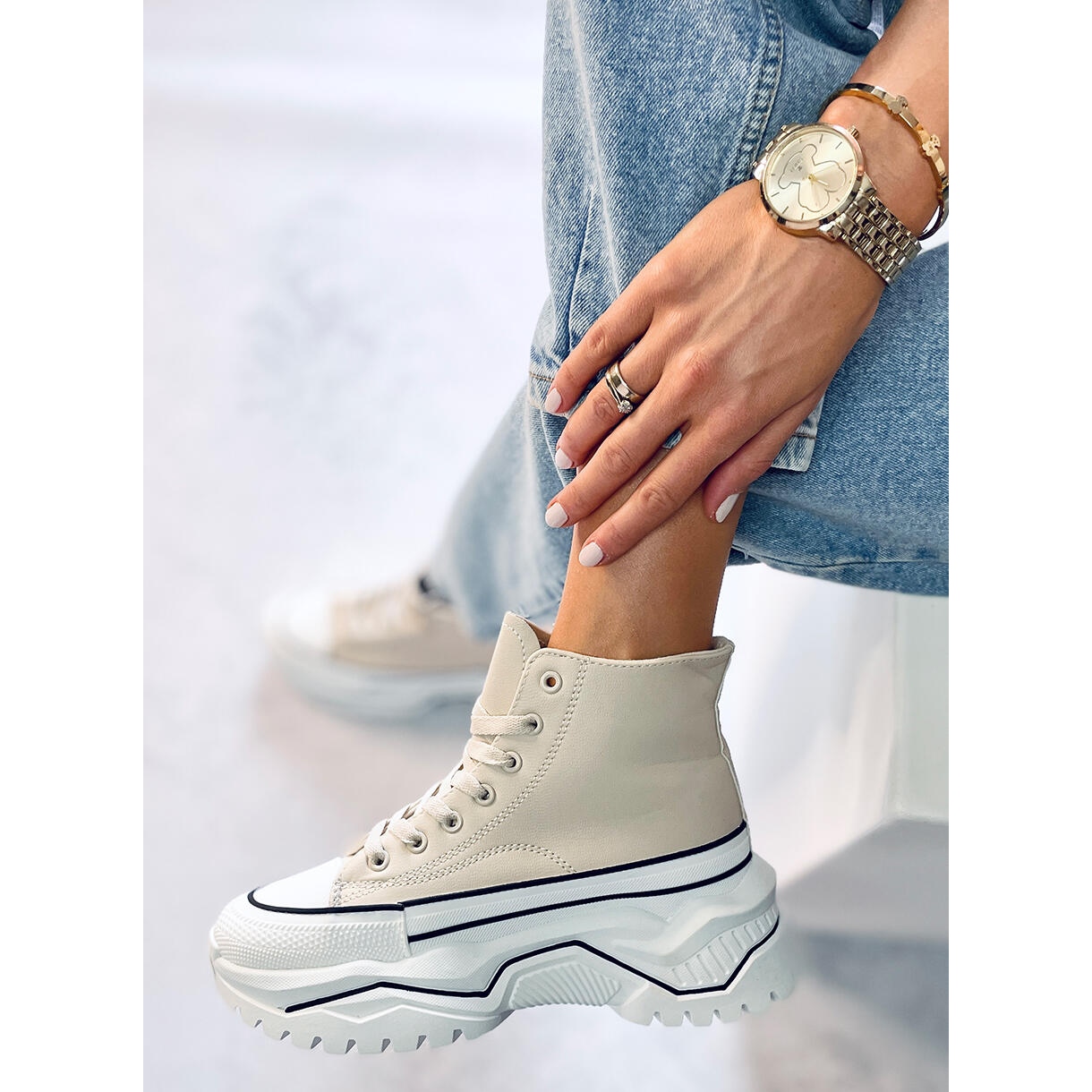 Le sneakers con la suola alta Corbel Beige sono un successo assoluto di questa stagione, che attireranno sicuramente l'attenzione di ogni amante della moda! Queste sneakers alte beige si distinguono non solo per il loro design moderno, ma anche per la loro eccellente lavorazione. Realizzati in pelle ecologica, uniscono lo stile all'attenzione per l'ambiente.