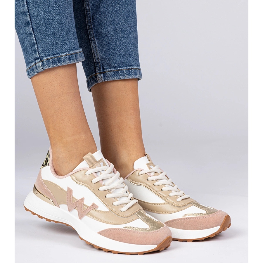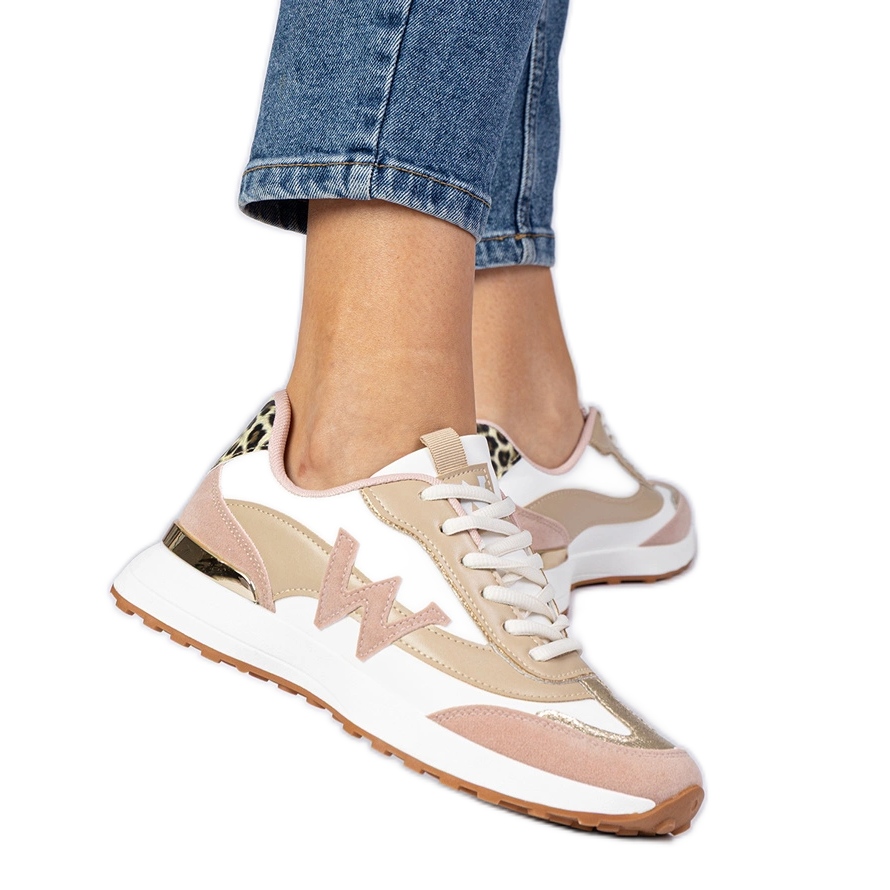 Queste sneaker si distinguono per i loro colori: le principali tonalità di bianco e rosa sono perfettamente completate da un sottile accento leopardo. Grazie a questo, ogni passo diventa un'espressione della tua personalità e del tuo stile. Un naso rotondo e una chiusura allacciata li rendono non solo alla moda, ma anche estremamente funzionale.