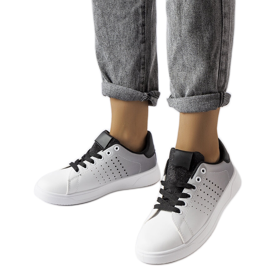 Sneaker eleganti Gordon (Modello KK-362) con un sottile effetto ombre combina un classico colore bianco con accenti neri. Realizzati in pelle ecologica, su una suola in gomma, funzionano ogni giorno come scarpe urbane comode.