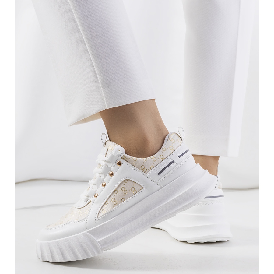 La loro suola alta, alta 3,5 cm, slancia otticamente la gamba, rendendo leggero ogni styling. I colori beige e bianco fanno sì che le sneakers si adattino perfettamente a una varietà di outfit, da quelli casual a quelli più eleganti.